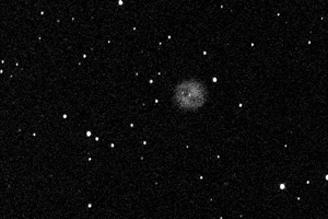 I used 20 second, simple dark-subtracted integrations to acquire images of 26 objects on the list, enough to earn the coveted Zombie Pin. Some of the objects are located in the same frame. Some of them are old, familiar friends and some are new. The planetary nebulae look like bloated stars in the images. I performed the run on the night of May 28-29. The time of the acquisition appears in parentheses with the caption of each object.