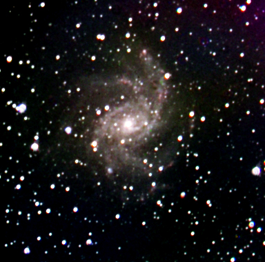 M63 Spiral Galaxy “The Sunflower” in Canes Venatici. 90 min. L, 25 min. R, 50 min. G, 170 min. B, C-11 @ f/6.3. Taken 16, 17, 29, and 30 June 2010, from under the Columbus nebula. Posted 24 July 2010 | Same raw frames reprocessed, larger FOV than the original. Posted 13 Feb. 2011. | Same raw frames reprocessed, same FOV as the February reprocess. Posted 25 Mar. 2011. |