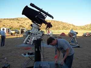 I wrote on one of my older Texas Star Party pages that I am running out of adjectives to describe a successful Texas Star Party. Last year's event was a tough act to follow. The 2014 Texas Star Party did the nearly impossible feat of surpassing the 2013 event. Held May 25 through June 1, this year's star party equaled last year's in the number of clear nights, but six straight clear nights this year left attendees pretty exhausted by the time Saturday rolled around. My sister Anne couldn't repeat her attendance this year, but my friend Joe Golias of Astrozap made his second Texas Star Party appearance with a new imaging rig in addition to one he brought last year. My AT8RCF astrograph made its first Texas Star Party appearance on the heels of its triumphant performance at the 2014 Winter Star Party. I had intended to bring my recently built Scarlet and Gray Astrograph (SAGA) Imaging scope and enter it into the amateur telescope making competition, but a last minute transportation issue forced me to downsize the amount of equipment taken to the Texas Star Party. Thus, the SAGA remained at home.