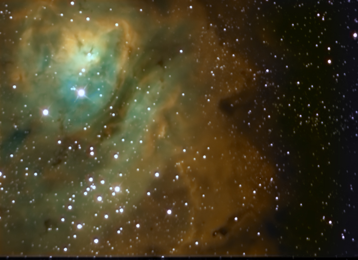 It was astonishing to have that many clear nights that close to the start of the “rainy” season in the Davis Mountains. There was precedent, however, as TSP 2008 was held close to the same time of the year and we enjoyed a similar number of clear nights. There are advantages to a late date: the Milky Way rises earlier in the evening and nighttime temperatures are more moderate. The detriments are that there are fewer hours of total darkness at night, and even less time for galaxy hunting. The latter one was made worse by my choice to set up my rig too close to the tree line. Despite that, I was ideally placed to take advantage of all the available time to image the nebulae.